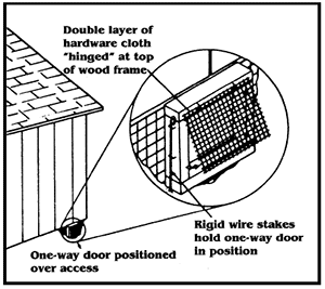 For more details about dealing with raccoons and raccoon baffles or one-way trap doors, click here.