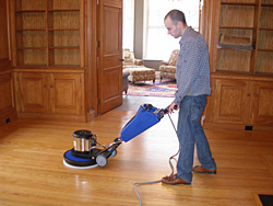 Wash the floors with a damp mop to remove in dirt and grit that may have stuck to the floor. Never allow any liquid to stay on the floor especially when you are mopping the floor with a mop. It should be only damp and not wet. Never use any abrasive material or any soap that could damage the finish on the floor.